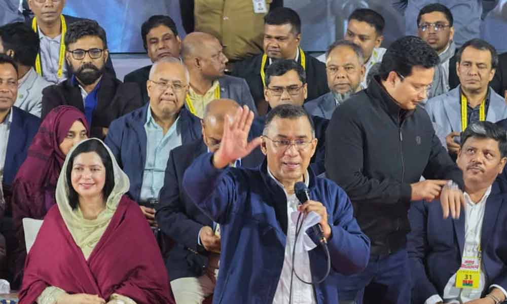 প্রথম নির্বাচনী জনসভার মঞ্চে তারেক রহমান