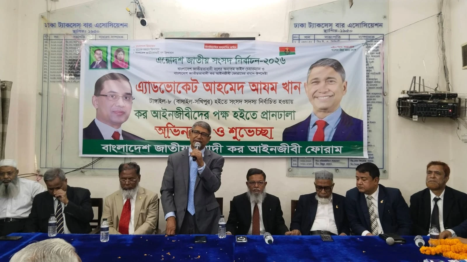 ২০২৬ সালের জাতীয় সংসদ নির্বাচনে টাঙ্গাইল-৮ (সখীপুর–বাসাইল) আসন থেকে আয়কর আইনজীবী অ্যাডভোকেট আহমেদ আযম খান বিপুল ভোটে সংসদ সদস্য নির্বাচিত হওয়ায় অভিনন্দন জানিয়েছে বাংলাদেশ জাতীয়তাবাদী কর আইনজীবী ফোরাম। ১৫ ফেব্রুয়ারি ঢাকা ট্যাকসেস বার এসোসিয়েশন হল রুমে অনুষ্ঠিত সভায় সভাপতিত্ব করেন ঢাকা ট্যাকসেস বার এসোসিয়েশের সভাপতি এ এইচ এম মাহবুবুস সালেকিন। সভা পরিচালনা করেন সাধারণ সম্পাদক মো: আবু নাছের মজুমদার মেজবাহ। উপস্থিত থেকে বক্তৃতা করেন বাংলাদেশ বার কাউন্সিলের সদস্য অ্যাডভোকেট মো: আব্দুল মতিন, বাংলাদেশ ট্যাক্স ল ইয়ার্স এসোসিয়েশনের প্রেসিডেন্ট রমিজ উদ্দিন আহম্মেদ, মহাসচিব অ্যাডভোকেট মো: মাজম আলি, ঢাকা ট্যাক্সেস বার এসোসিয়েশনের সাবেক সভাপতি অ্যাডভোকেট মুজিবুর রহমান, সাবেক সাধারণ সম্পাদক এডভোকেট মো: জাফর উল্লাহ ও মো: মনজুর হোসেন পাটোয়ারী প্রমুখ।